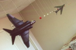 the MiG's nose. 1/100th second after the instant shown, bullet #8 will